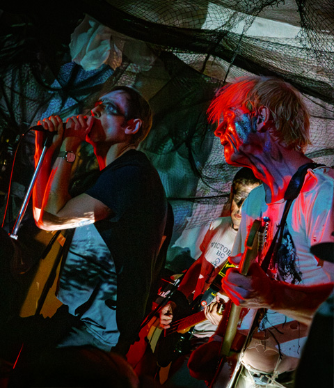 As the band dove headlong into the set, each member entirely committed to the music and the moment, a prismatic light show flickered and flashed and “blood” sprayed from all angles, covering the crowd who, rather than recoiling, pressed forward into the stage. By the time Geoff Rickly screamed, “If you want to learn, you have to burn” the crowd had fallen completely under the spell and what began as a show was now holy communion. For the next hour The Philadelphia Society of Future Vampires danced and screamed and celebrated the freedom that Ink & Dagger opened our eyes to so many years ago.