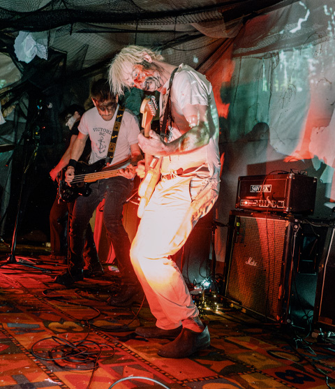 Regardless of the chill, the air outside the Church was electric and I could see the bloody faces and hollow eyes of kindred spirits and souls lost and found as I made my approach. I feel the need to take a brief detour from the actual story to say, I have been to shows all over the country and all over the world, and I found myself truly in awe of how well-run and deeply respected The First Unitarian Church of Philadelphia is. When I commented on this, a local friend looked at me sternly and retorted, “Everyone knows not to disrespect the Church. You’d have to be an idiot to pull any bullshit here.” The ability to hold independent, DIY shows is the lifeblood of our subculture, and I hope every scene can find, support, and respect a space as well as Philadelphia has the First Unitarian.